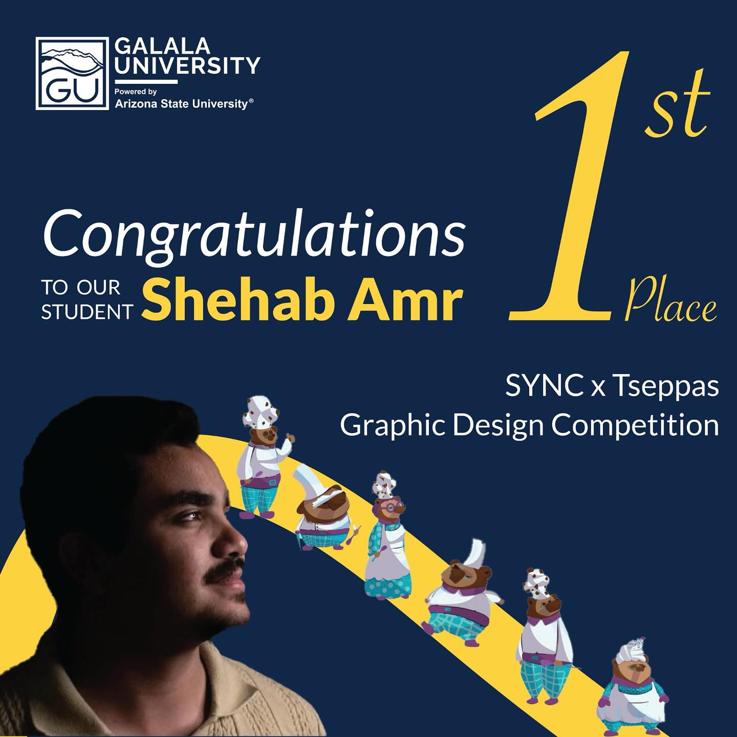 SYNC x Tseppas Graphic Design Competition – First Place Winner A vintage icon, reimagined for today. Galala University celebrates Shehab Amr—graduate of the Graphic Design Program—for taking First Place in the SYNC x Tseppas national competition. The brief was deceptively simple: evolve Tseppas’ beloved teddy into a modern bear family that feels fresh on packaging,...Read More
